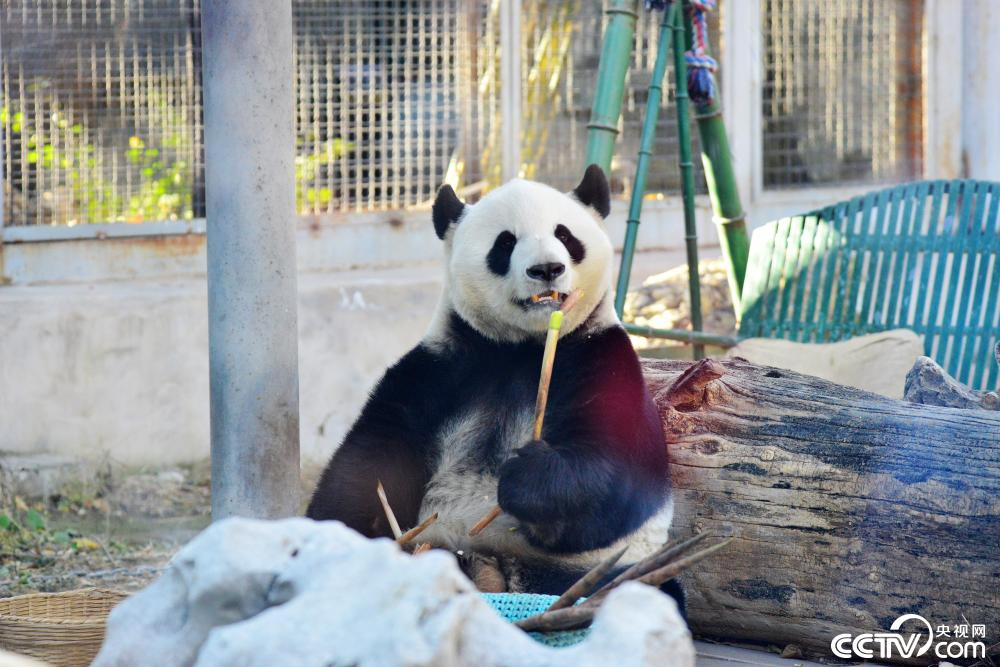 11月19日,京城气温回升,冬日阳光温暖宜人,北京动物园的网红大熊猫“萌兰”惬意地坐在地上吃竹笋,悠闲悠哉萌态令人拍照不止。