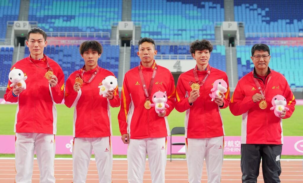 在男子4×400米决赛中,由胡兴星、李永杰、杨磊、张一品组成的四川队以3分04秒81摘得金牌。这也是四川体育代表团本届全运会的第17枚金牌。上一届全运会,四川队也是这个项目的冠军得主。