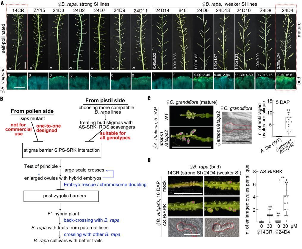 据介绍,这一研究成果不仅为十字花科作物的远缘杂交育种提供了关键理论依据,也为解决其他物种在种间、属间杂交中面临的生殖障碍提供了借鉴和思路,为作物野生种质资源的高效利用和新品种培育提供了新路径。