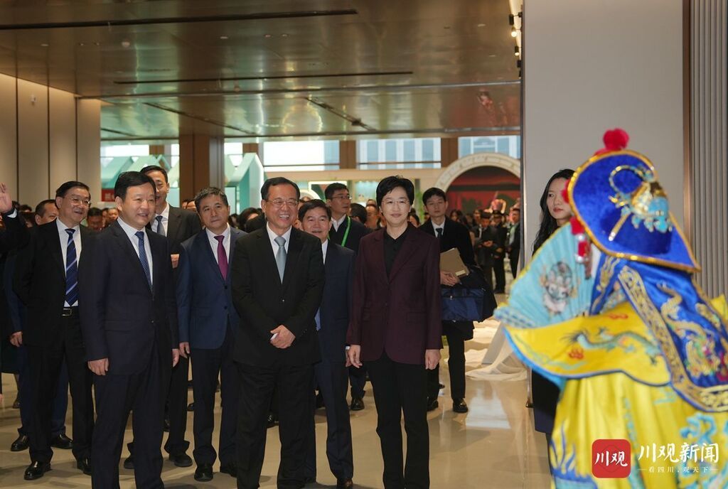 大会开始前,吕岩松、施小琳、刘国洪等参观了熊猫文创集市和相关展览。