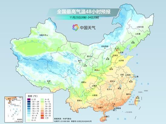 此外,25日至27日,又一股冷空气将自北向南影响我国,中东部大部地区将有4℃至8℃降温,部分地区降温10℃至12℃。这股冷空气过后,29日后可能还有冷空气影响我国。冷空气的来去给北方制造的气温波动更为明显,西北、东北、华北等地不仅累计降温幅度大,下周单日的气温变化幅度也较大。沈阳明天最高气温可达14℃,是11月下旬少见的温暖,之后迅速降温,27日最高气温将降到零下1℃。