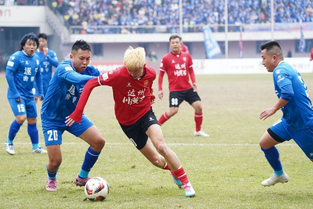 当客战遂宁的终场哨声响起,当双方球员牵手谢幕致意,当最后比分定格显示屏,当《友谊天长地久》的旋律回荡耳畔。我们久久伫立,如痴如醉,深深眺望,不忍离去。