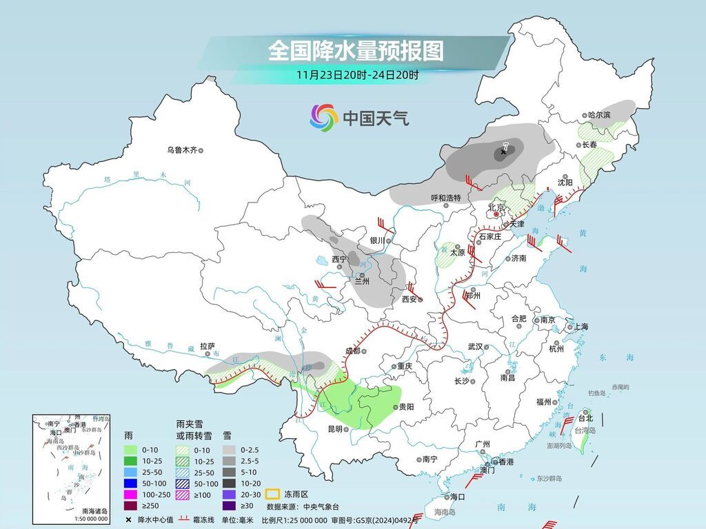 今天(11月23日)新一股冷空气影响已经展开,主要影响西北地区。在冷空气未影响到的中东部地区,今天白天北京大部、天津大部、河北东北部部分地区最高气温达15℃以上,江南多数地区超过20℃,部分地区温暖程度堪比常年10月下旬。