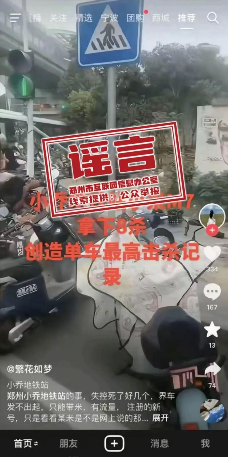 ·郑州市网信办:网传“小乔地铁站附近车祸致8人死亡”为谣言。