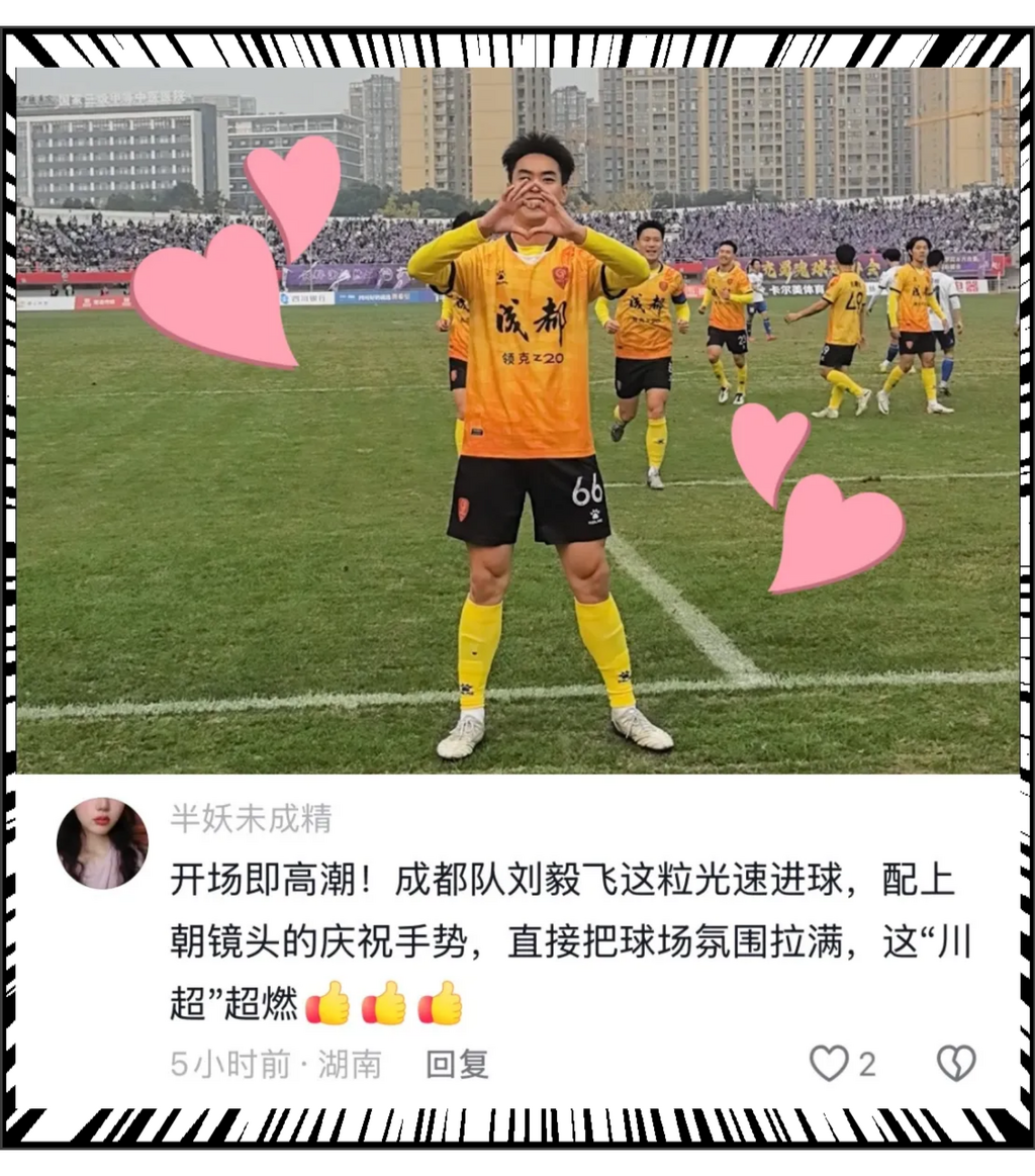 成都队66号球员刘毅飞,进球后难掩兴奋