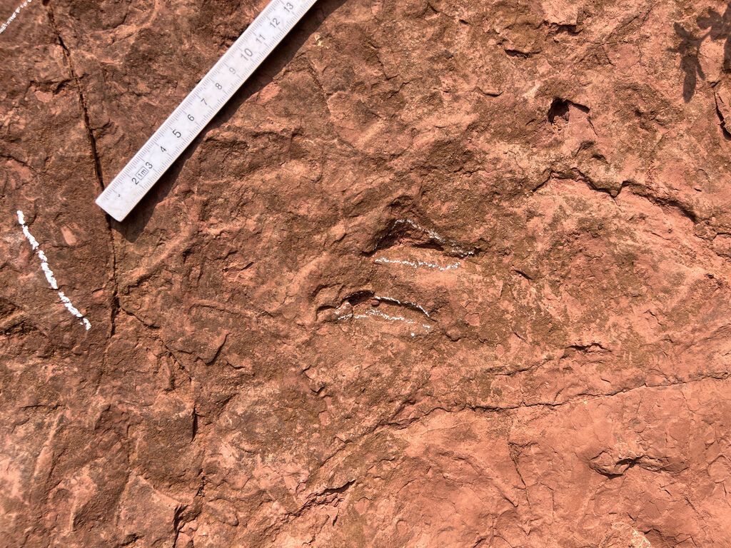 中国地质大学(北京)副教授、恐龙奥秘科学馆馆长邢立达介绍,五岔恐龙足迹群完整记录了蜥脚类、基干蜥脚形态类、兽脚类与基干鸟臀类恐龙共存的景象。其中发现的蜥脚类足迹最长可达60厘米,与四川盆地常见的早侏罗世蜥脚类足迹群具有一致性。小型基干鸟臀类恐龙留下的活动痕迹中,部分步迹长度仅6至7厘米,但步幅相对较大,推测其曾处于奔跑状态。