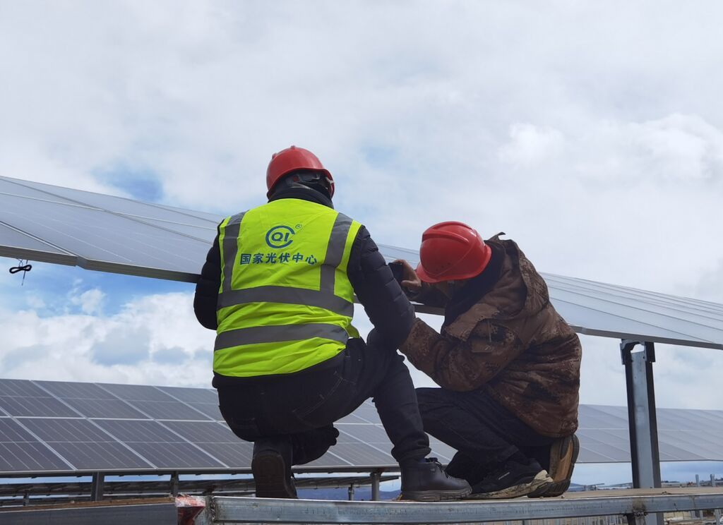 成检公司专业技术人员正在为高原光伏电站提供检验检测服务