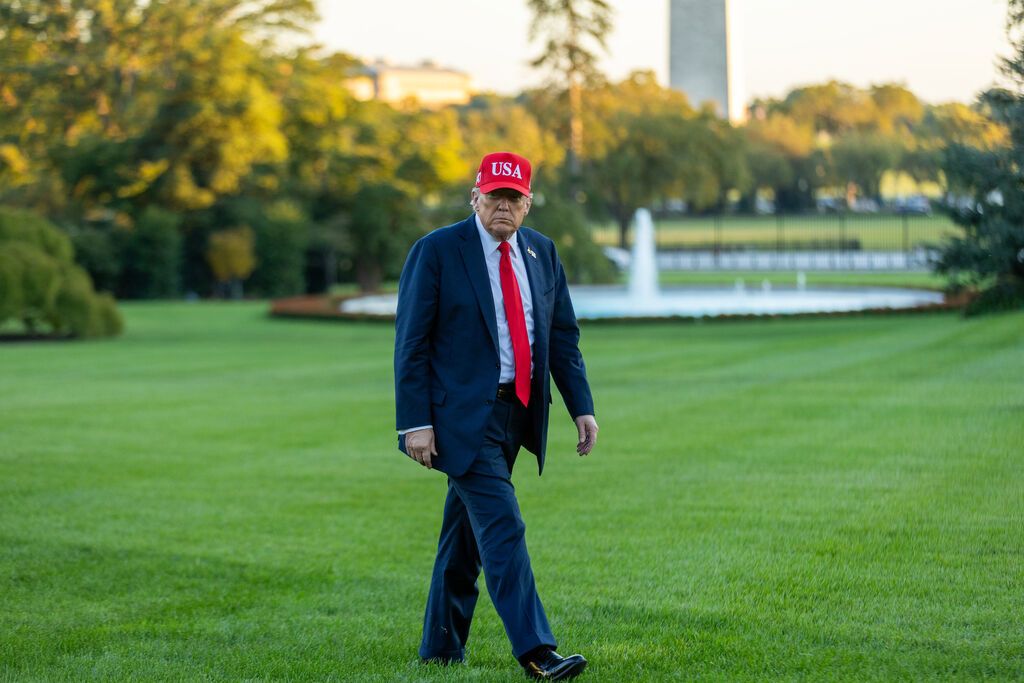 10月5日,在美国首都华盛顿,美国总统特朗普返回白宫。新华社记者胡友松摄