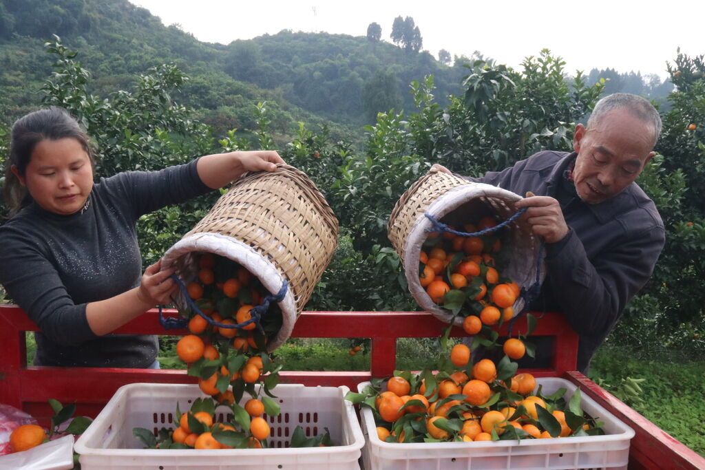 和李连明不同,柑橘产业大户罗大金不仅自己种植了50亩柑橘,还是赵家镇最大的柑橘收购商。随着爱媛、脐橙等柑橘大量成熟,这段时间,罗大金的电话总是响个不停。他的业务不仅在桂花村,而且遍及整个赵家镇,甚至延伸至其他乡镇和区县。罗大金年轻时在外务工,2012年回村规模化种植柑橘,后来涉足柑橘经销,到目前,其年总营业额可达100万元,年利润近25万元。罗大金每年还雇佣30余人管护果园。眼下,罗大金每天开着三轮车,穿梭于自家与乡亲的果园,他还联系了浙江的商家前来收购村里的脐橙。