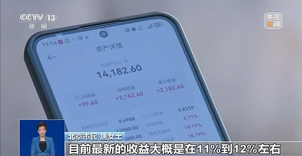 北京市民 唐女士:我是2022年底就开始投个人养老金产品,包括有一些比如说公募基金。目前最新的收益是在11%到12%左右。
