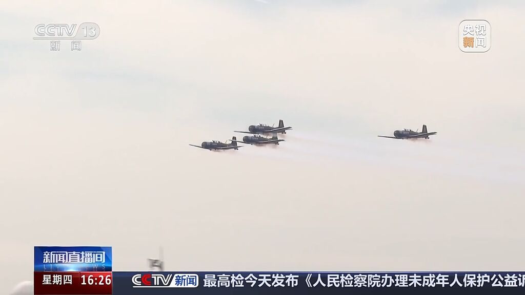 在南非特技飞行表演队表演之后,中国“红星”飞行表演队的四架初教-6编队起飞,低空大速度通场,四机菱形编队盘旋,四机对冲跃升。初教-6这一“宝刀不老”的经典机型,靠着过硬的性能,为观众带来了多种多样的高难度飞行动作。