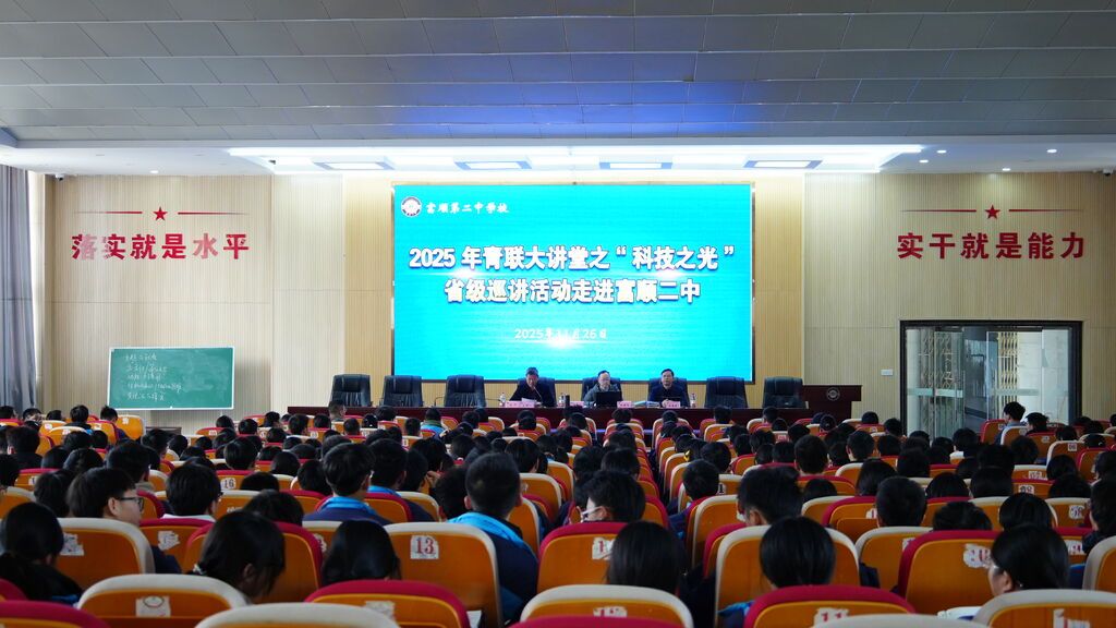 弦歌不辍育桃李,科技赋能向未来。近日,2025年青联大讲堂之“科技之光”省级巡讲活动走进富顺二中,中国航发涡轮院整机试验部副部长陈鹏飞研究员以“共筑航空梦·强我中国心”为题,为高二年级450余名师生带来了一场兼具专业性与感染力的科普盛宴。