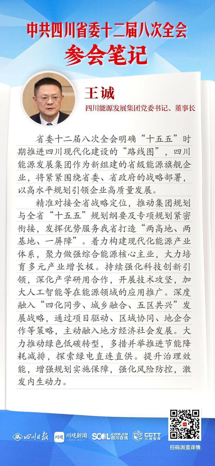 省委十二届八次全会明确“十五五”时期推进四川现代化建设的“路线图”,四川能源发展集团作为新组建的省级能源旗舰企业,将紧紧围绕省委、省政府的战略部署,以高水平规划引领企业高质量发展。