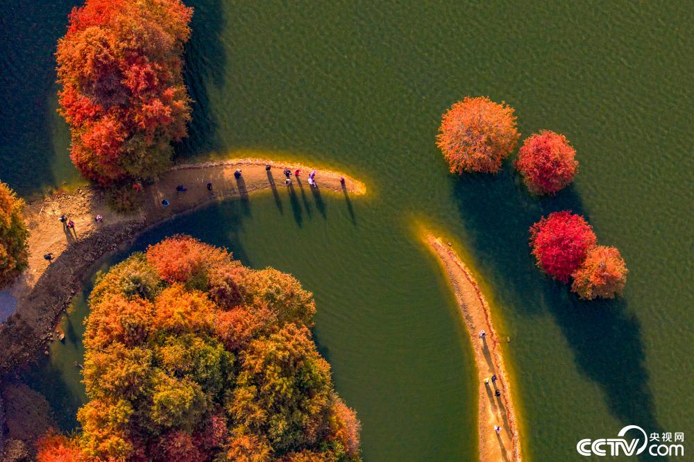 11月27日,浙江绍兴上虞区麻岙水库水杉林红了。