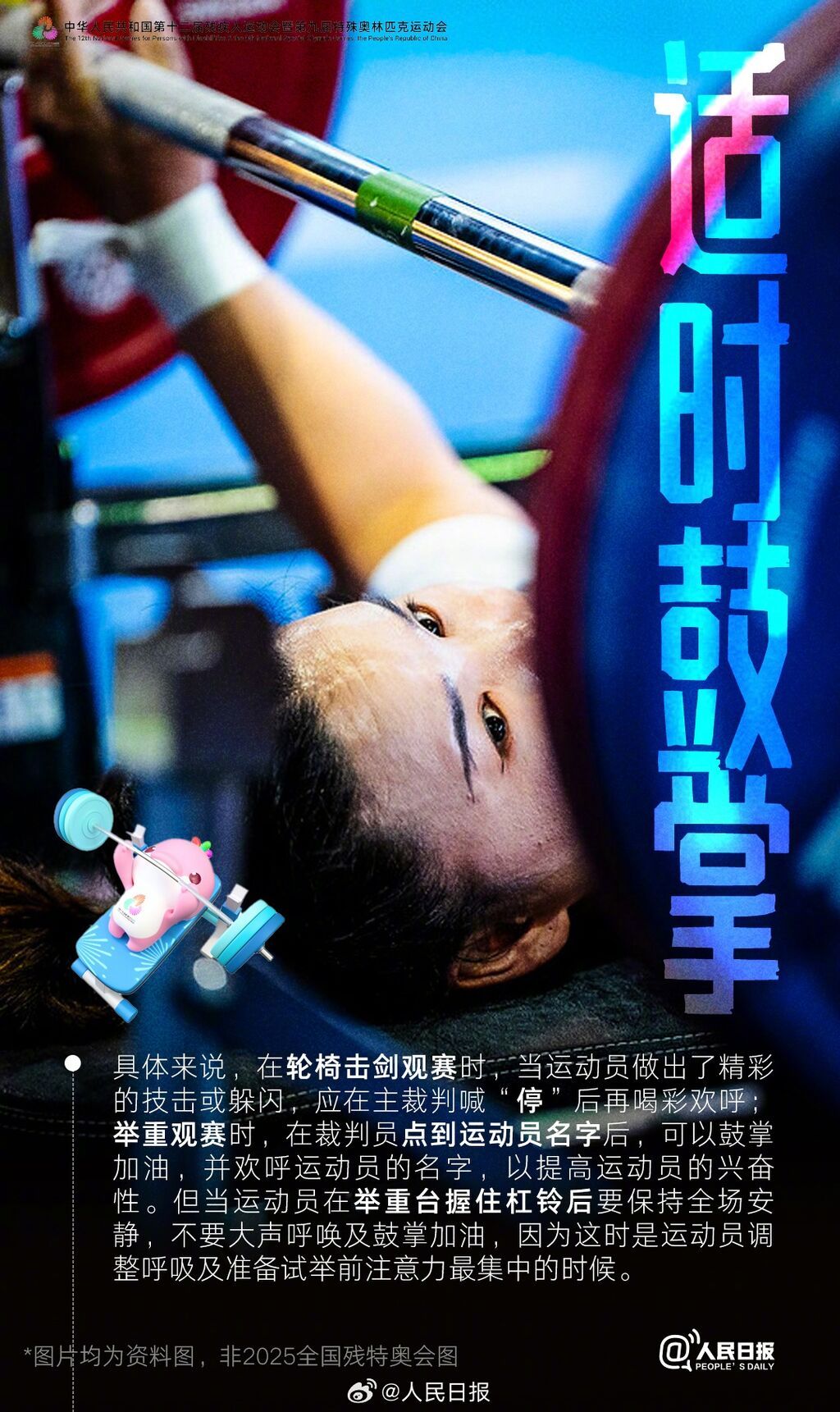 2025全国残特奥会即将开幕,你知道观赛的基本礼仪吗?哪些项目需要保持安静?哪些时刻可以鼓掌喝彩?登场时,用掌声致敬勇气;拼搏时,用目光凝聚支持;胜利时,用拥抱传递感动。一起,为拼搏喝彩!