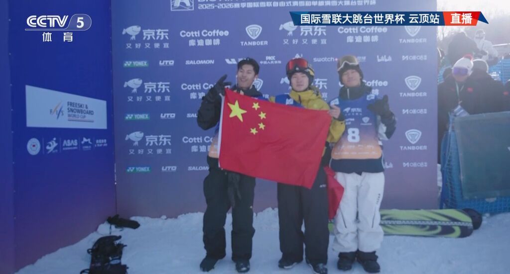 11月29日,在2025-2026赛季国际雪联大跳台世界杯云顶站单板滑雪男子决赛中,中国选手苏翊鸣获得冠军,葛春宇获得亚军。