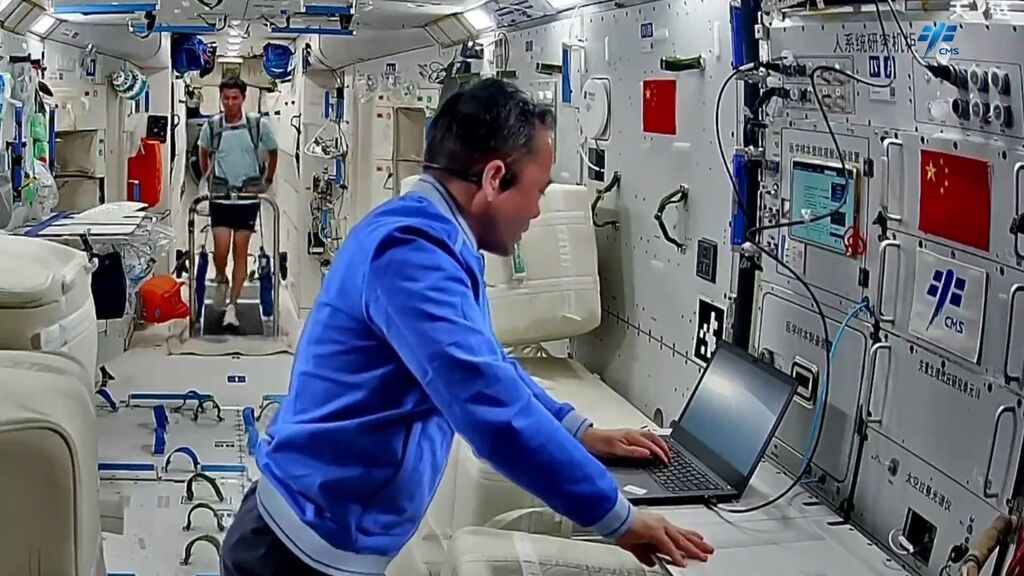 航天员使用笔记本电脑,开展了微重力直觉物理行为实验,获取相关行为数据,探索长期空间飞行对直觉物理表征的影响和恢复机制。