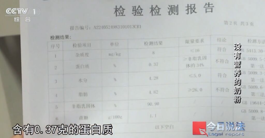 经过专业机构鉴定,假奶粉倒入水后瞬间溶解,里边有大量麦芽糊精,几乎没有任何脂肪、蛋白质等成分。经检测涉案的牛奶粉、山羊奶粉、骆驼奶粉等14种奶粉,无论是脂肪、蛋白质还是钙的含量都远远没有达到国家标准的要求。