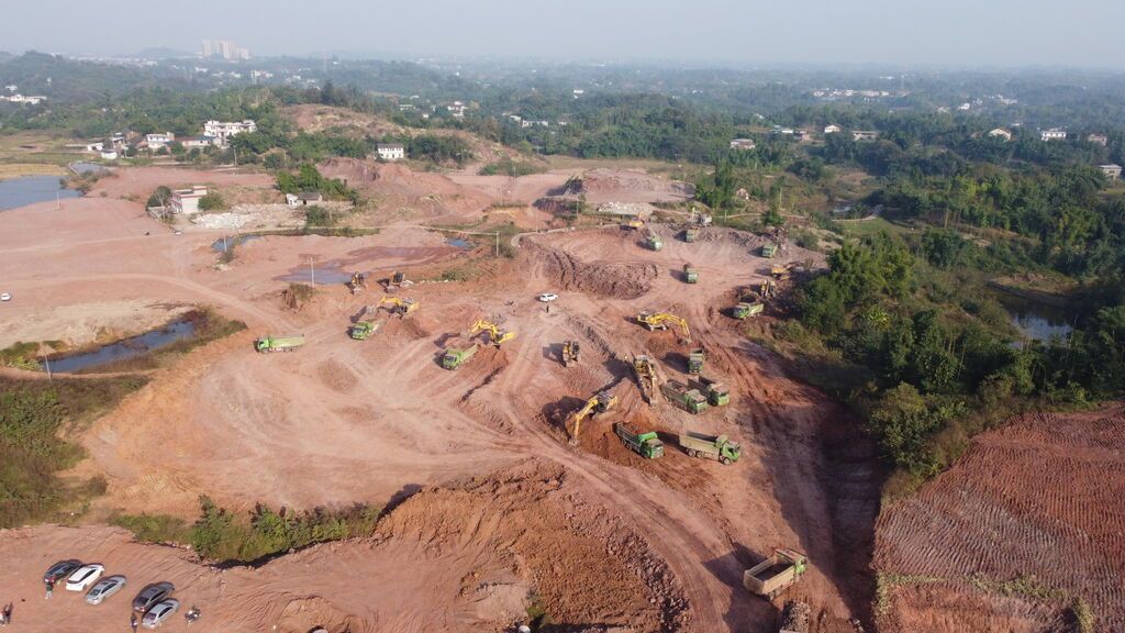 初冬时节的四川富顺晨光经开区,处处涌动着项目建设的热潮。在经开路B段施工现场,工程车辆往来穿梭,挖掘机、破碎机轰鸣作响,近百名建设者各司其职,绑扎钢筋、铺设路基,一派热火朝天的施工景象。