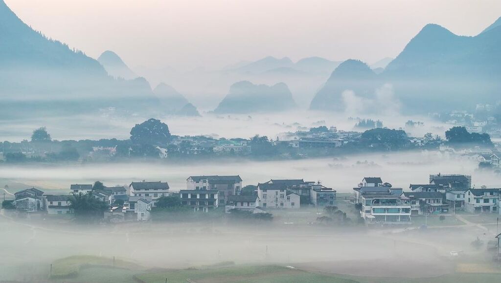 12月1日,贵州省黔西南州兴义市万峰林景区平流雾美景。