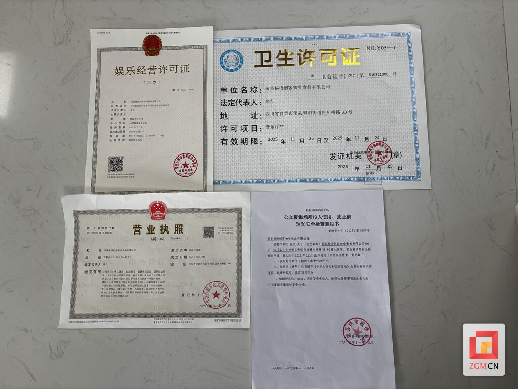 近日,荣县秘语创客咖啡食品有限公司顺利领取开办娱乐场所所需的多项许可证书,成为全市首个“娱乐场所开办一件事”的受益者。
