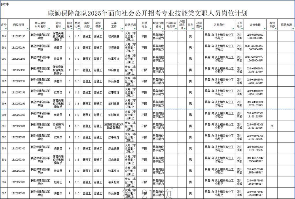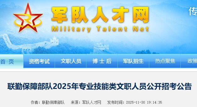 根据《中国人民解放军文职人员条例》及有关政策规定,现将联勤保障部队2025年专业技能类文职人员公开招考有关事项公告如下: