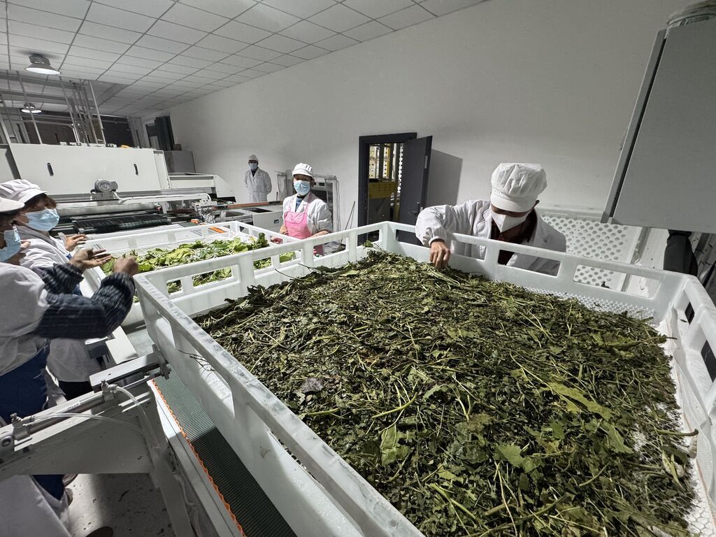 智能茶桑融合发展示范基地里,工作人员正在除沙