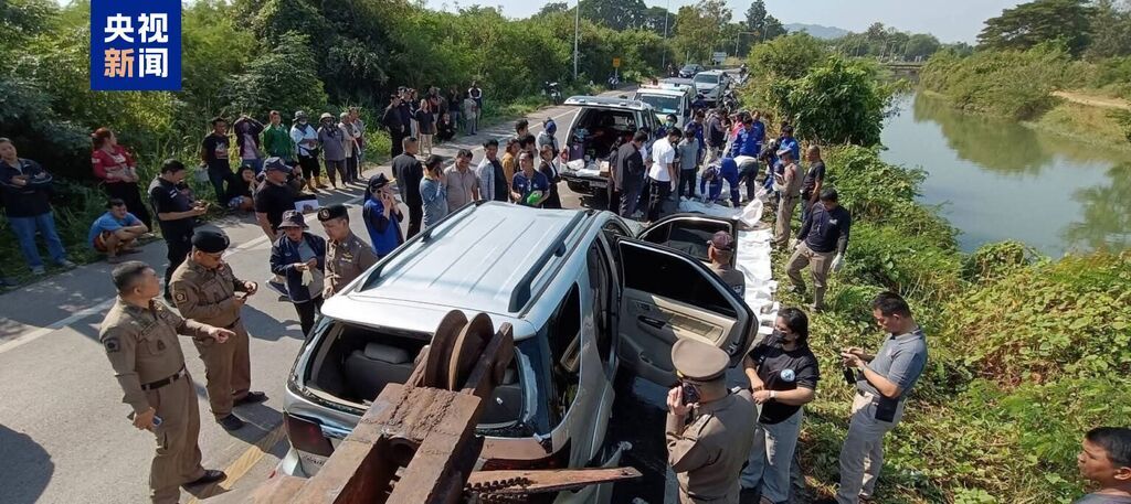 总台记者当地时间12月3日获悉,泰国叻武里府发生一起车祸,一车辆坠入灌溉渠。目前该事故已致9人死亡。(总台记者 宋焕钰)