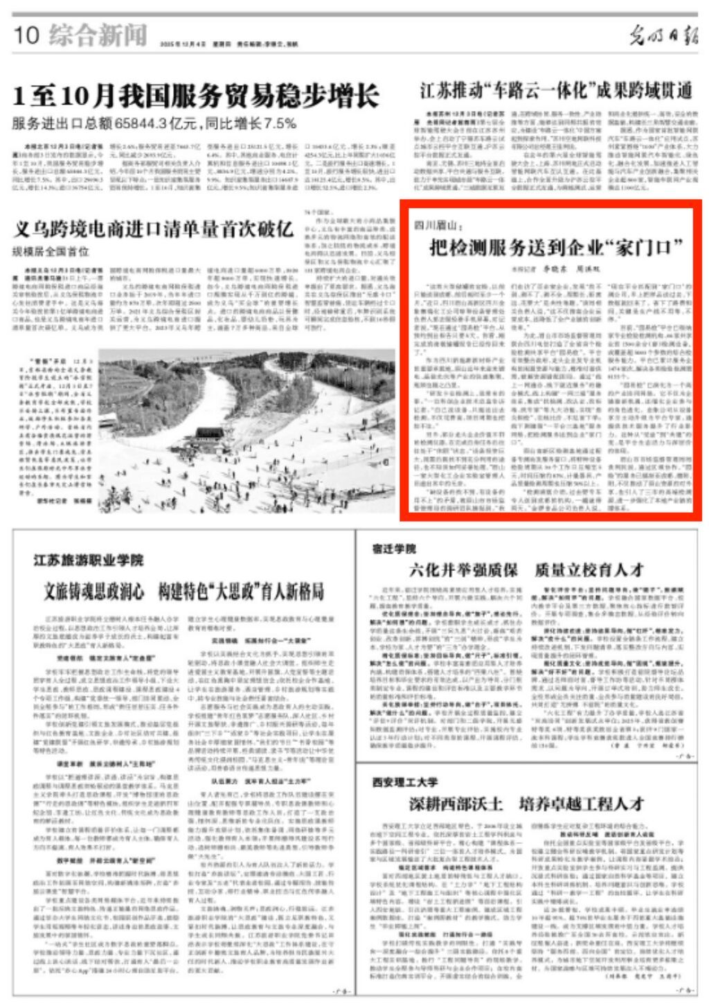 眉山高新区检测基地通过配备专测站及服务窗口,将特种设备检验周期从30个工作日压缩至5天,时间压缩约83%,计量器具、产品质量检测周期也压缩50%以上。