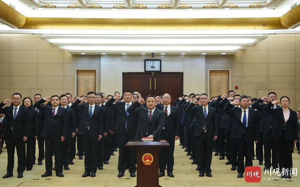 宣誓后,施小琳作了讲话。她指出,郑重宣誓字字千钧,希望大家共同牢记在心、践之于行,用实干实绩兑现庄严承诺。要对党绝对忠诚,坚持不懈用习近平新时代中国特色社会主义思想凝心铸魂,高质量落实党中央、国务院和省委决策部署,扛牢“两高地、两基地、一屏障”使命任务,深入实施“四化同步、城乡融合、五区共兴”发展战略,当好执行者、行动派、实干家,坚定拥护“两个确立”、坚决做到“两个维护”。要站稳人民立场,始终牢记人民至上、人民政府为人民,把增进民生福祉作为工作出发点和落脚点,围绕群众急难愁盼推出更多有温度的务实举措,高质量办好民生实事,倾听群众呼声、尊重群众意愿、集中群众智慧,推动共建共治共享。要高效履职尽责,始终树牢正确政绩观,推动国家战略腹地建设、新时代西部大开发、成渝地区双城经济圈建设等国家战略走深走实,全力以赴拼经济搞建设,因地制宜发展新质生产力,坚定不移推动高质量发展,聚焦科技创新、产业发展、内需提振、扩大开放、区域协调、生态环保等任务谋划牵引性工作抓手和载体,以重点攻坚带动全局突破,切实守牢安全底线,推动各项工作不断取得新进展。要严守纪律规矩,带头尊法学法守法用法,遵守廉洁从政规定,做到忠诚干净担当,纵深推进全面从严治党,积极营造风清气正政治生态和干事创业良好环境。要干字当头、真抓实干,确保“十四五”圆满收官和“十五五”良好开局,以不负人民、不负时代的业绩,为谱写中国式现代化四川新篇章贡献力量。