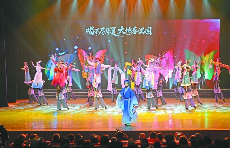 表演尾声,40人红扇队、40人腰鼓队、40人莲厢队相继登场,清脆的莲厢声、激昂的鼓点与灵动的扇舞相互呼应,为演出画上圆满句号。