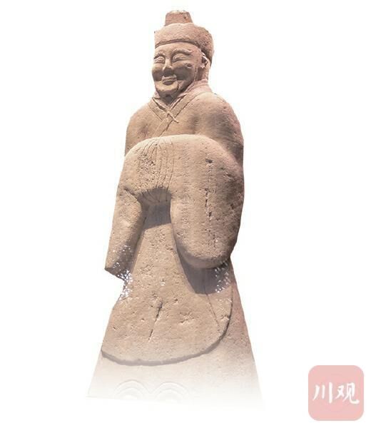 顺着伏龙观42级石阶拾级而上,就能看到主持修建都江堰的李冰的石像。这座石像雕造于东汉建宁元年(公元168年),两袖和衣襟上镌刻有38字隶书题记。其中,右袖刻有“尹龙长陈壹造三神石人珍水万世焉”字样。值得一提的是,此处用“珍水万世”而非“镇水万世”,体现了李冰和后世治水者顺应自然、珍水爱水的生态观。