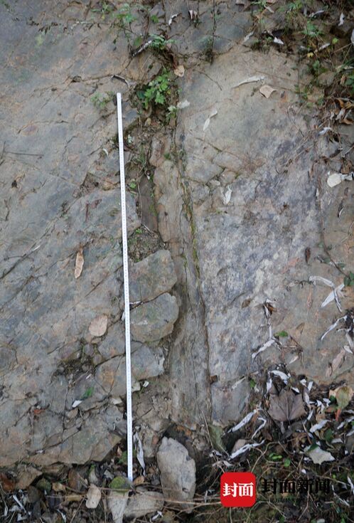 这处让他们眼前一亮的遗迹,就在四川都江堰九鼎大道附近一处沉积岩岩壁上。最初是在11月23日由户外爱好者严宗米在徒步过程中发现的。当天,他和家人在徒步时,偶然发现了岩壁上这些与众不同的痕迹。清晰的爪印和挤压纹理,让地质学专业出身的他立刻意识到可能是古生物足迹。随后,他联系到邢立达,经过进一步的鉴定,确认它们来自距今2亿年前的三叠纪晚期地层。