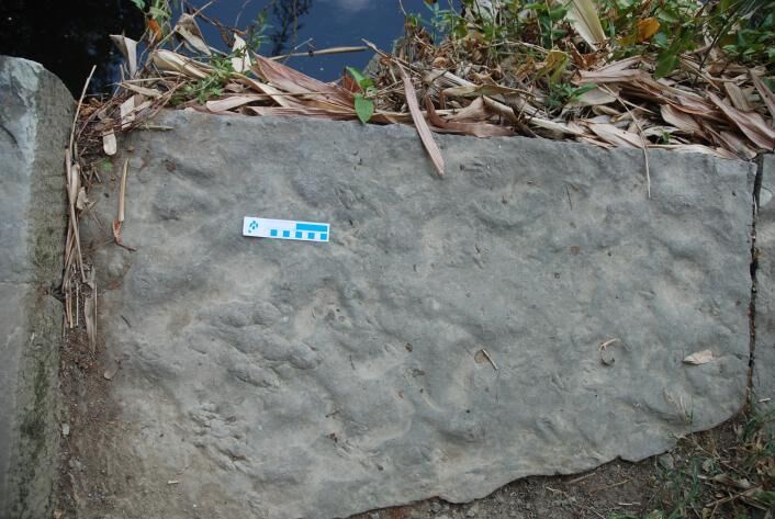 研究表明,这块垫脚石所在的自贡市富顺县永年镇五里村,保存了413个早侏罗世(约1.9亿至1.8亿年前)的兽脚类恐龙足迹与尾迹,为揭示早期兽脚类恐龙的多样性、运动方式及行为特征提供了极为珍贵的实证。目前,相关成果已在国际专业期刊《古地理学报》(英文版)上在线发表。
