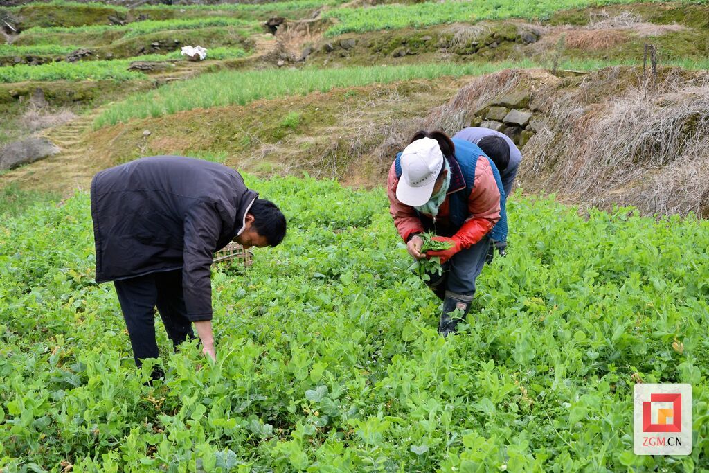 每年9月底到次年3月,是豌豆尖的采摘期,这半年里,这抹“翠绿”成为村里重要的收入来源。“每天下午最热闹,七八辆收购车准时来。”丁永超说,村里蔬菜主要通过网络销往泸州、重庆等地,本地也有少量供应。当天,豌豆尖的收购价是每斤3.5元,沉甸甸的菜篮里,盛满了村民实实在在的获得感。