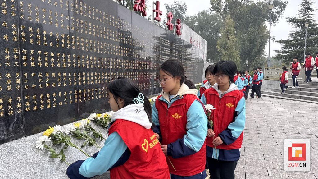 在团旗的见证下,全体团员举起右拳,重温入团誓词,铮铮誓言铿锵有力,彰显了新时代青年传承先烈遗志、勇担强国使命的坚定决心。仪式结束后,师生们手持白菊花,有序来到遇难烈士名单前,逐一献花致意,缅怀先烈们为民族解放、国家独立事业献出的宝贵生命。