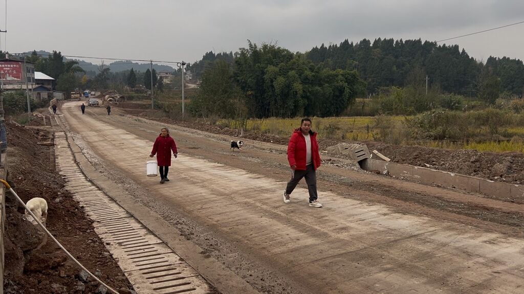 “这个路修得太恼火了嘛,挖烂了一两年了都还没有修起,一下雨全是泥巴浆浆,水也到处淌起”。天天接送孩子上下学的张女士迫切希望这条路早日建成通车,下雨天就不用再被迫绕行。“一下雨娃娃走路脚上全是泥巴,修好了就更好噻。”