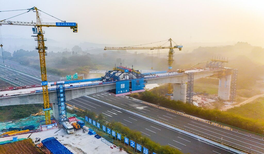 12月10日,绵遂资内铁路牌坊湾特大桥跨汉蓉高速公路连续梁合龙,这是项目全线第一个合龙的跨高速公路连续梁,为绵遂资内铁路绵阳至遂宁段2028年建成通车奠定基础。