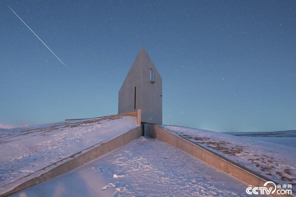 12月13日,双子座流星雨划过内蒙古乌兰察布市兴和县涝利海景区夜空。