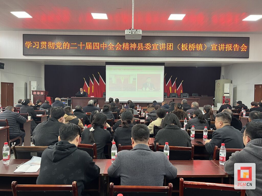近日,富顺县板桥镇在镇文化站会议室召开党的二十届四中全会精神专题宣讲报告会,镇党政领导班子,部分市、县、镇人大代表,各村(社区)党支部书记及机关年轻干部代表参加学习。