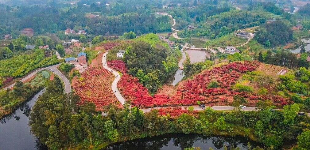 每年三月,红叶漫山遍野,白仓村迎来最美时节。春季到莲花看红叶已成为自贡市民的春日约定。红叶文化旅游活动已成功举办三届,年接待游客超10万人次,带动农业、旅游综合收入突破500万元。