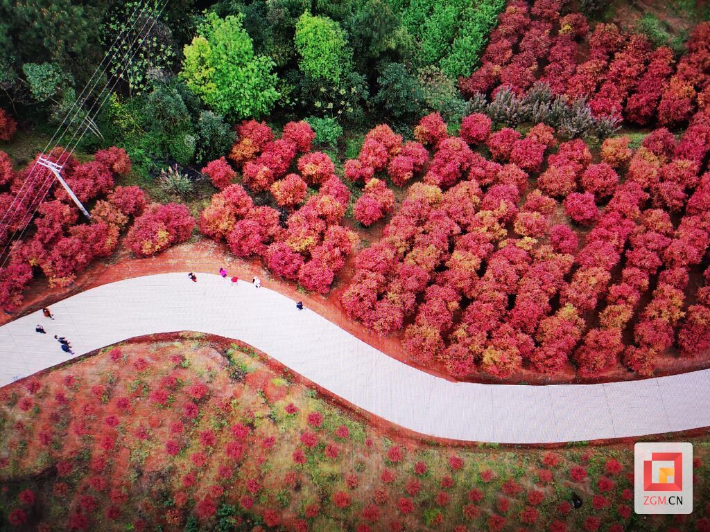 如果说历史是白仓的根,那么红枫就是白仓的“金名片”。近年来,白仓村以“观光农业+乡土文化”为双翼,积极融入贡井区“一城一廊一园三区三带”全域旅游布局。位于村内的“莲花彩色生态园区”,已成为区域旅游的重要节点——2700亩现代化彩色林木基地,配套游客中心、生态停车场、旅游公厕、足球场以及7.2公里彩化道路,设施日趋完善。