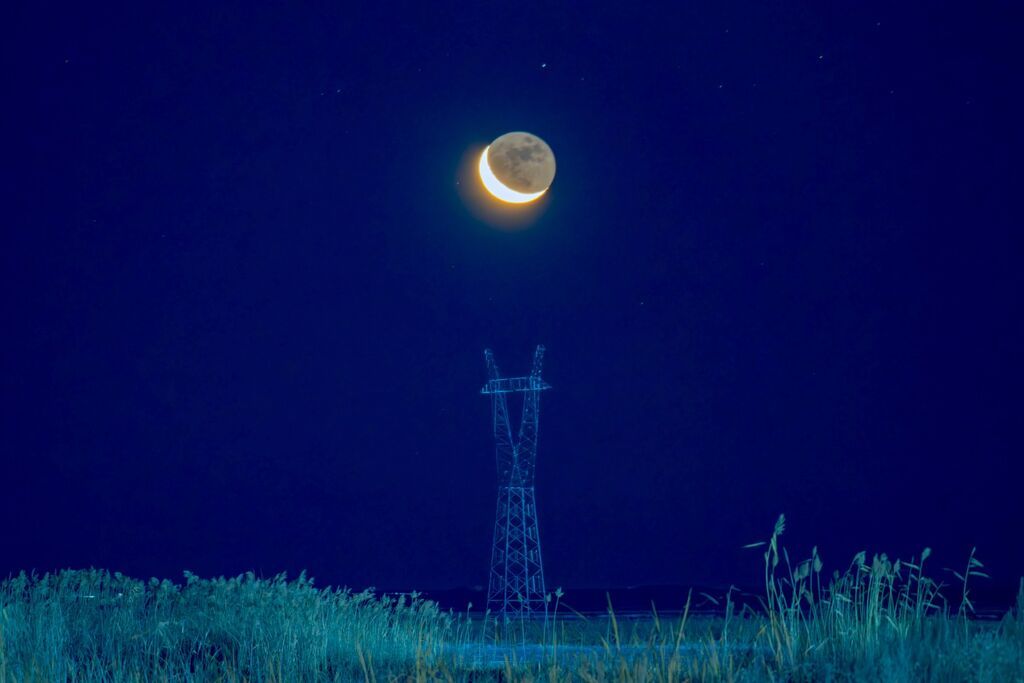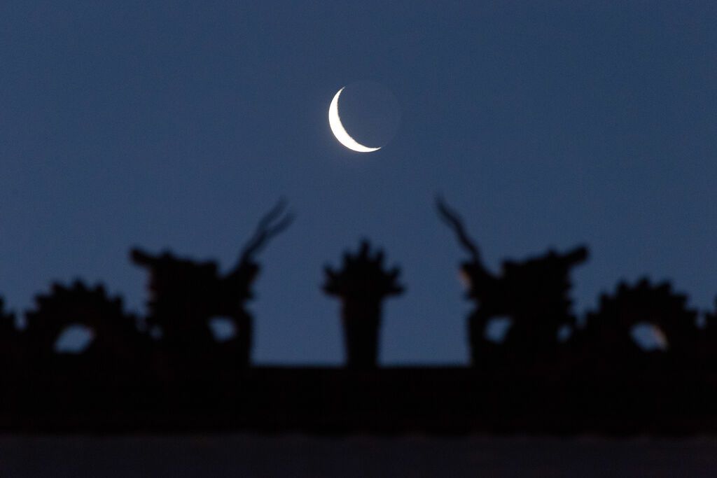 12月16日在黑龙江省黑河市拍摄的月亮。新华社发(钱泊羽摄)
