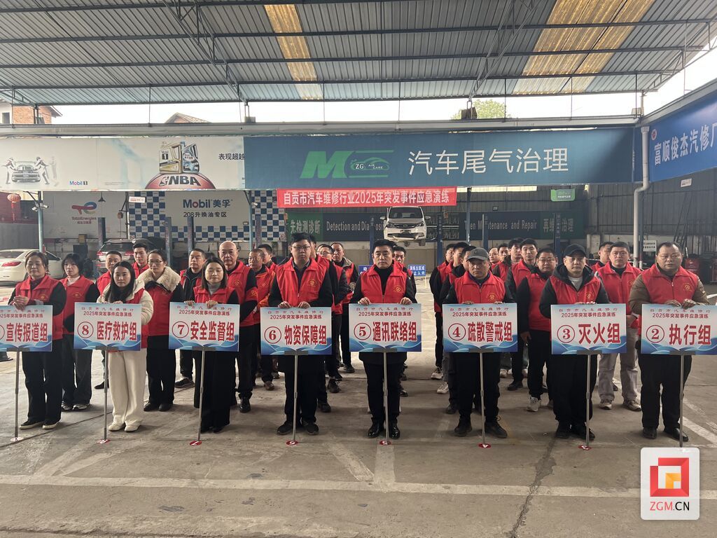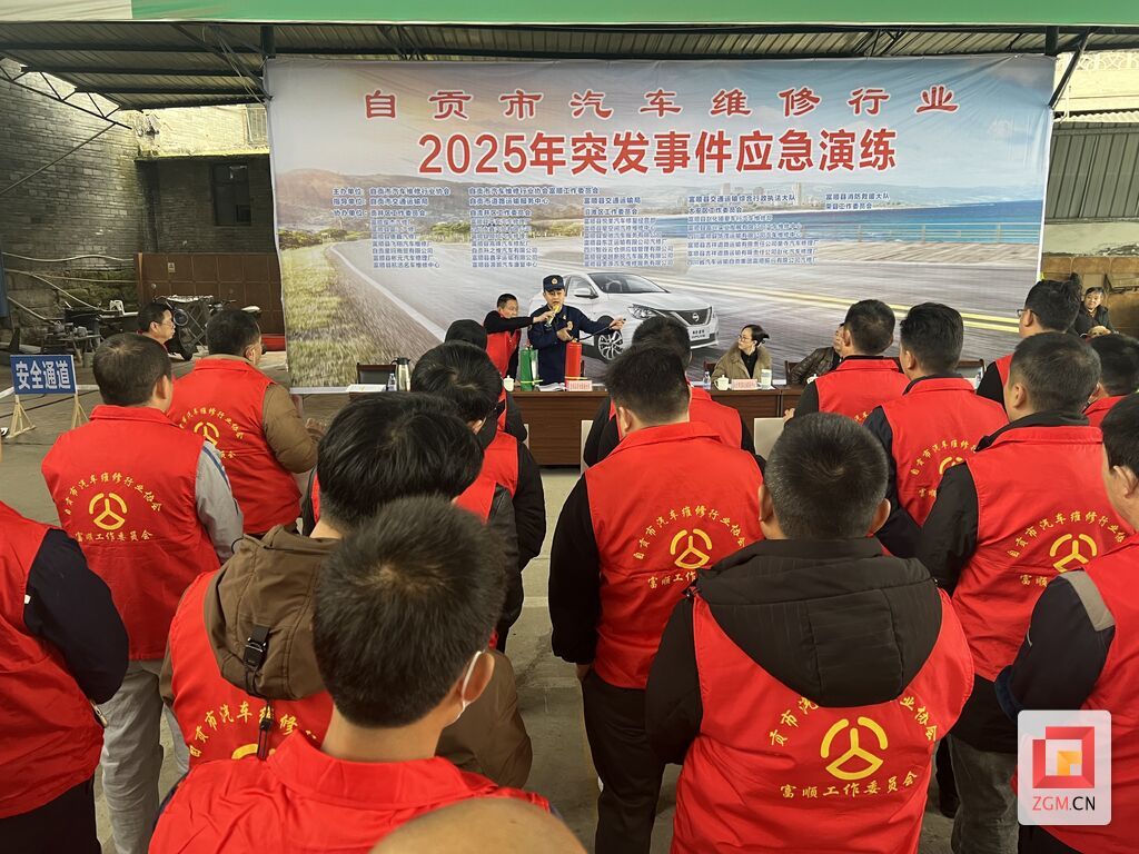 12月16日,自贡市2025年汽车维修行业突发事件应急演练在富顺县俊杰汽修厂成功举办。本次演练由自贡市汽车维修行业协会及富顺工作委员会主办,市、县交通运输局、县消防救援大队等多部门指导,26家汽修企业的60余名安全负责人及管理员共同参与,各区县汽修行业工作委员会相关负责人现场观摩演练。