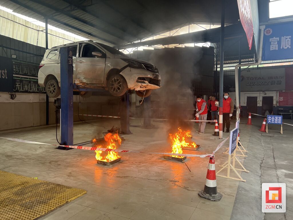 演练以“修理厂车辆维修焊接作业引发火灾”为核心场景,分为应急处置演练、消防知识培训、灭火实操训练三大环节。