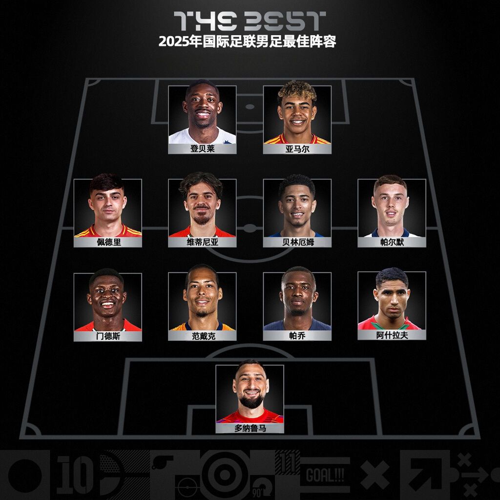 在登贝莱之后,西班牙新星亚马尔与法国球星姆巴佩分列二、三位。该榜单由各国家队主教练、队长与媒体代表投票产生,除上述三人外,阿什拉夫、拉菲尼亚、萨拉赫、维蒂尼亚、凯恩、努诺·门德斯、佩德里与帕尔默也进入了候选名单。