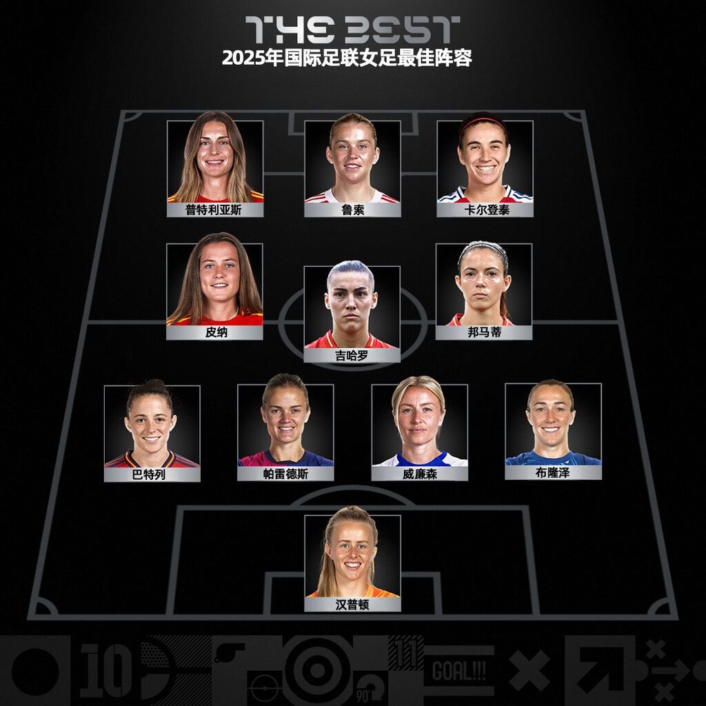 效力于西班牙巴塞罗那俱乐部的邦马蒂获得女足金球奖。作为国家队与俱乐部的双料核心,邦马蒂在过去一年中延续着自己的出色状态,她帮助巴塞罗那队获得西甲冠军与欧冠亚军,并率领西班牙队闯入欧洲杯决赛。继实现女足金球奖三连庄后,如今邦马蒂又连续三年加冕世界足球小姐荣誉。