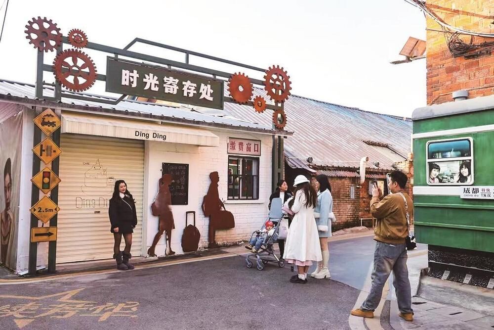 冬日暖阳抚过斑驳的红砖墙,蒸汽机车头静卧巷口,绿皮火车泛着陈旧的墨绿光泽,月台信号灯将时光拉回汽笛声声的20世纪……沧桑岁月已被酿成烟火人间,迎接着南来北往的访客。