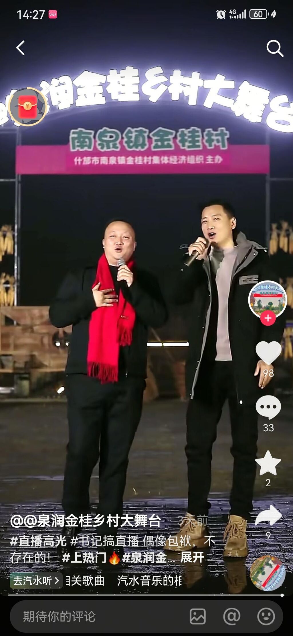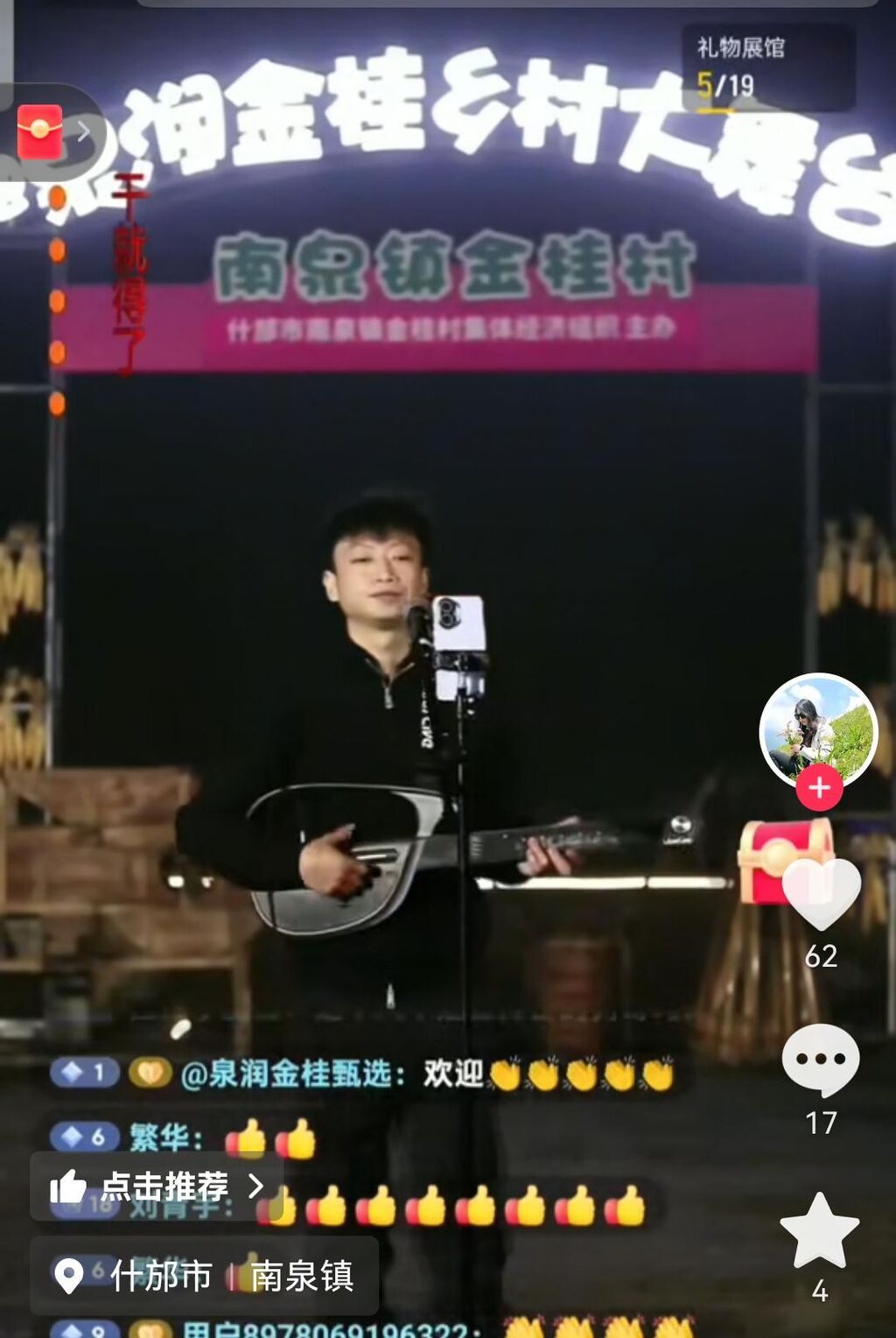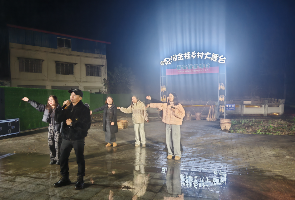 12月11日晚6点30分,这场由金桂村集体经济主办的活动正式开始。虽然天空飘着小雨,却丝毫未能减弱大家的热情,开播前就吸引了大量观众。