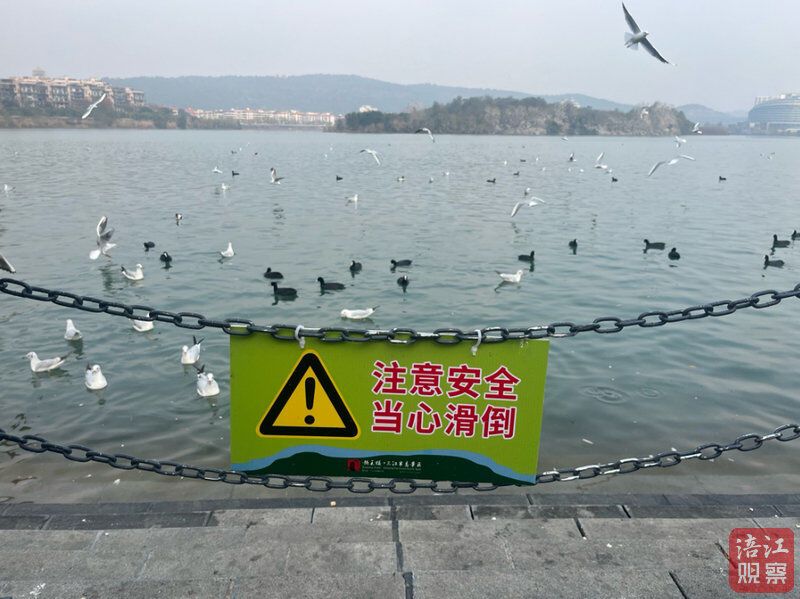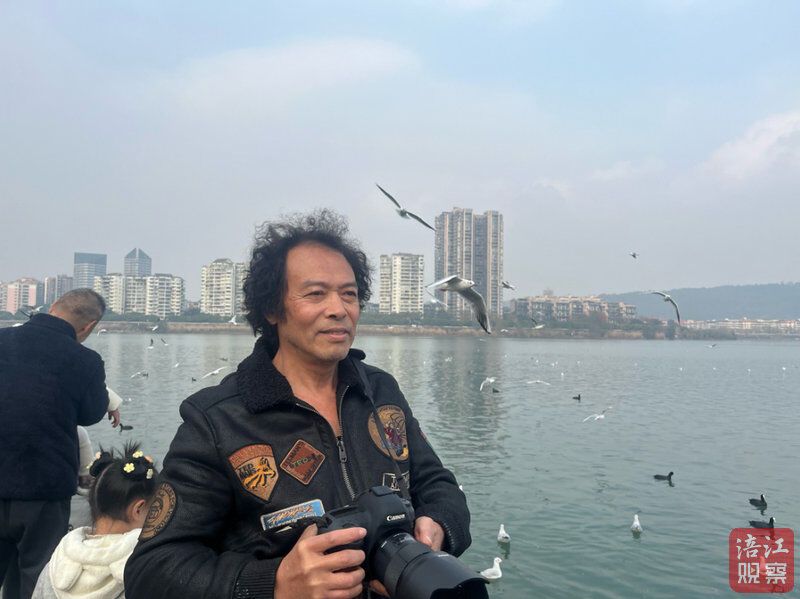 当时三江半岛光线较暗,仍有少数游客在观赏海鸥。有群众尝试用三脚架、灯架等物品施救,但未能成功。“我一看这情况,心里就想:我有能力,必须下水!” 20秒内,他迅速脱掉外衣裤,“扑通”一声跳入江中。